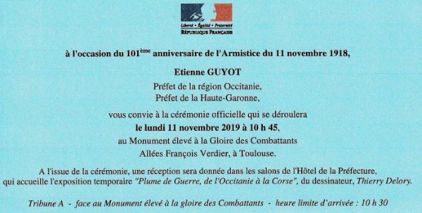 ►Le 11 novembre 2017, Cérémonie à Toulouse en présence des Autorités Civiles et Militaires.