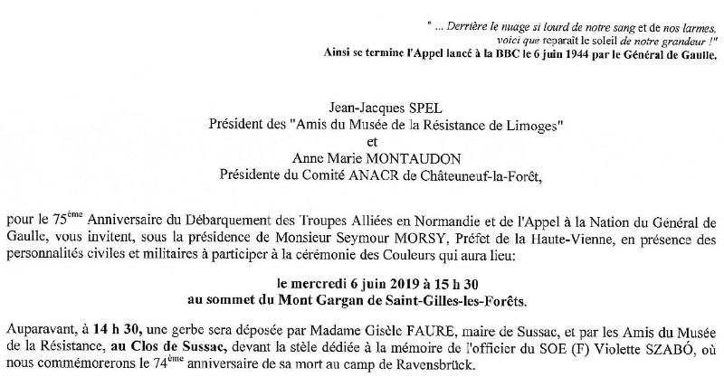 Le 08 juin 2015, lors de la journée nationale d’hommage aux morts pour la France en Indochine, l’AAMCI les camps parachutistes, a déposé une gerbe au monument aux Morts de la Place des Carmes de Limoges.