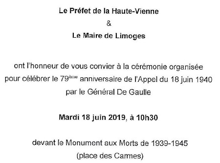 ► Cérémonie du 77eme anniversaire de la libération de Limoges.